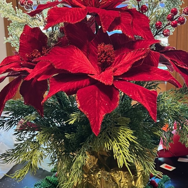 Traditional Christmas colors brightening the home with their holiday warmth.